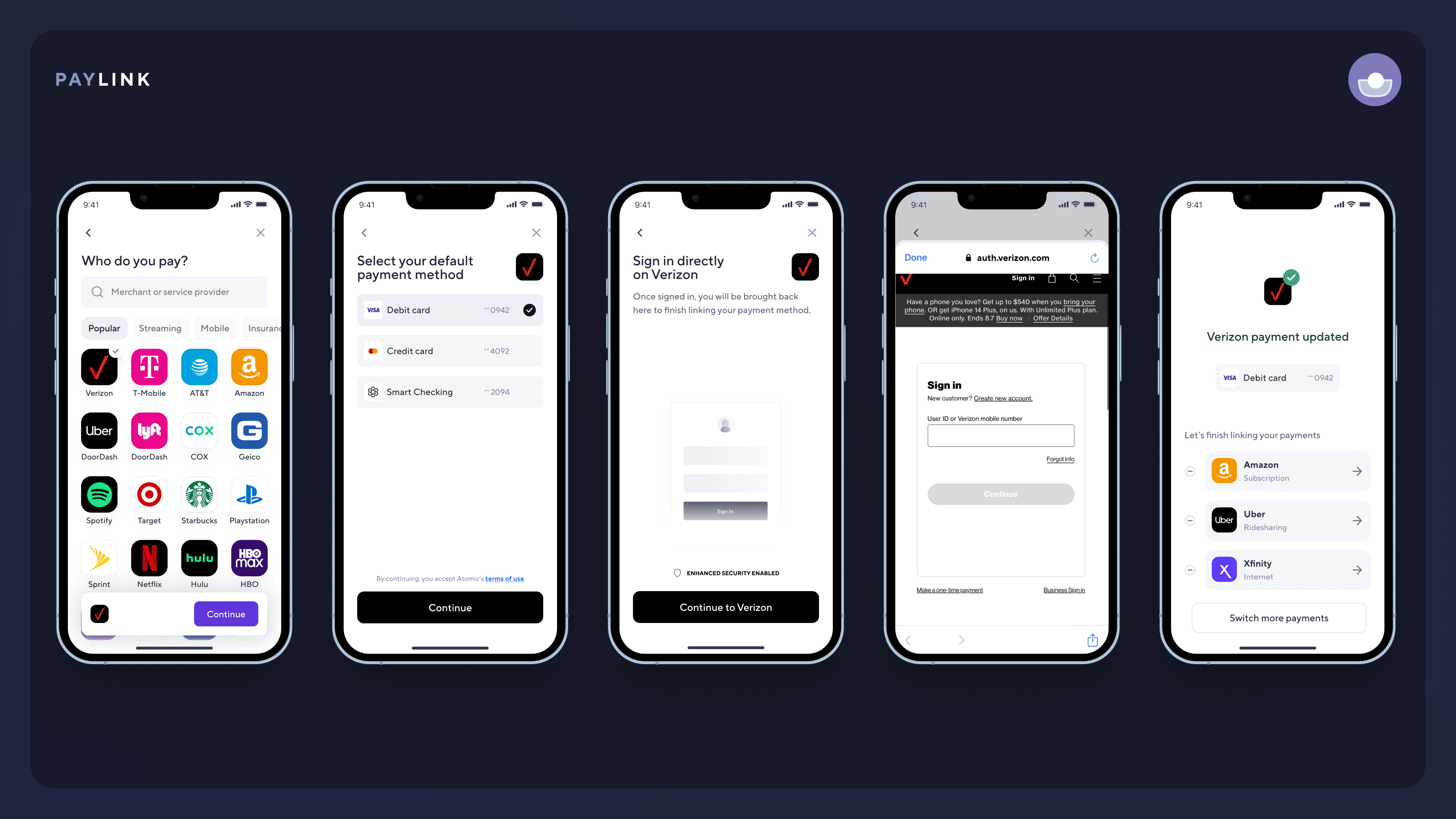 - Payment Management: PayLink helps consumers confidently manage subscriptions and bill payments from their new accounts.
